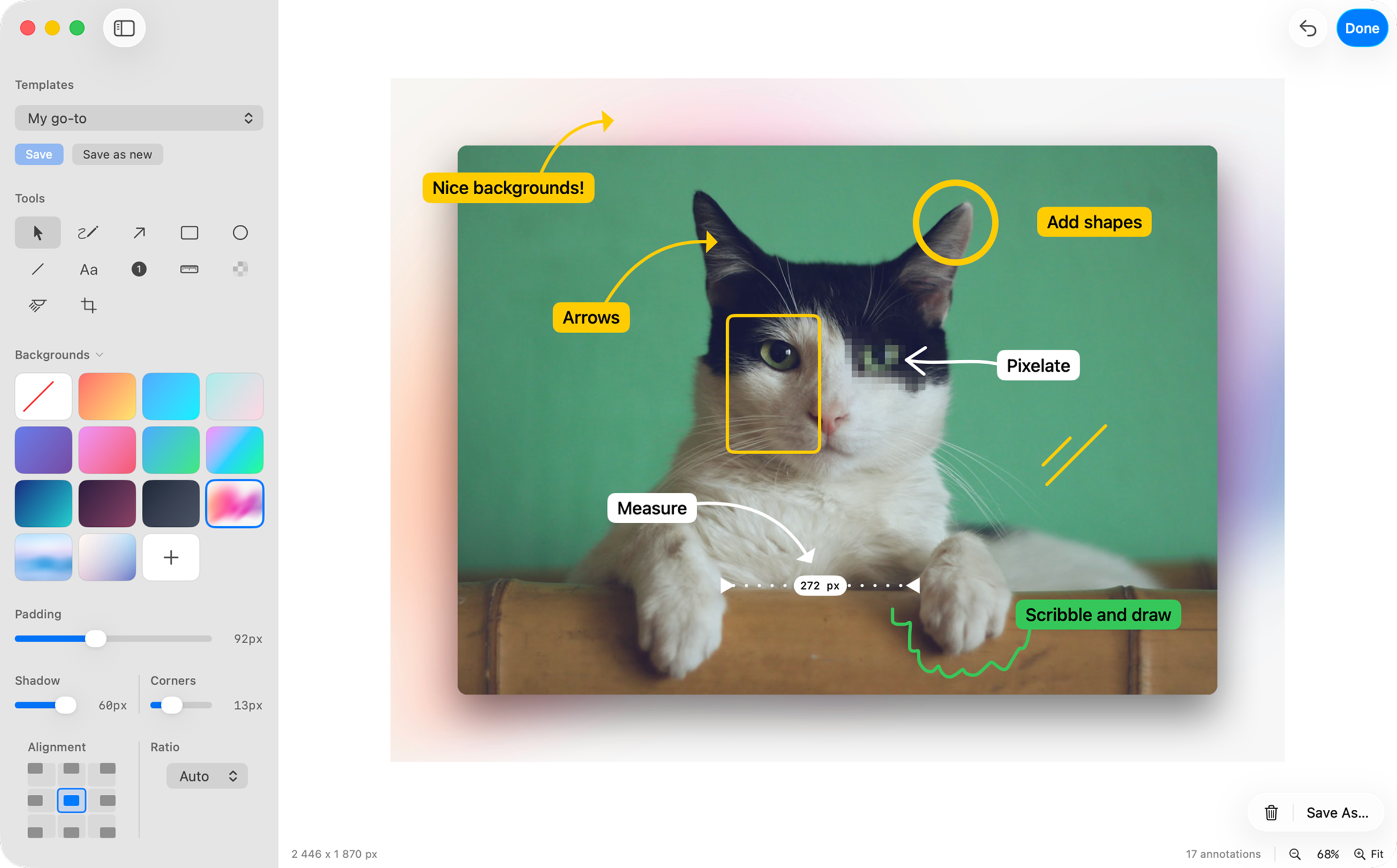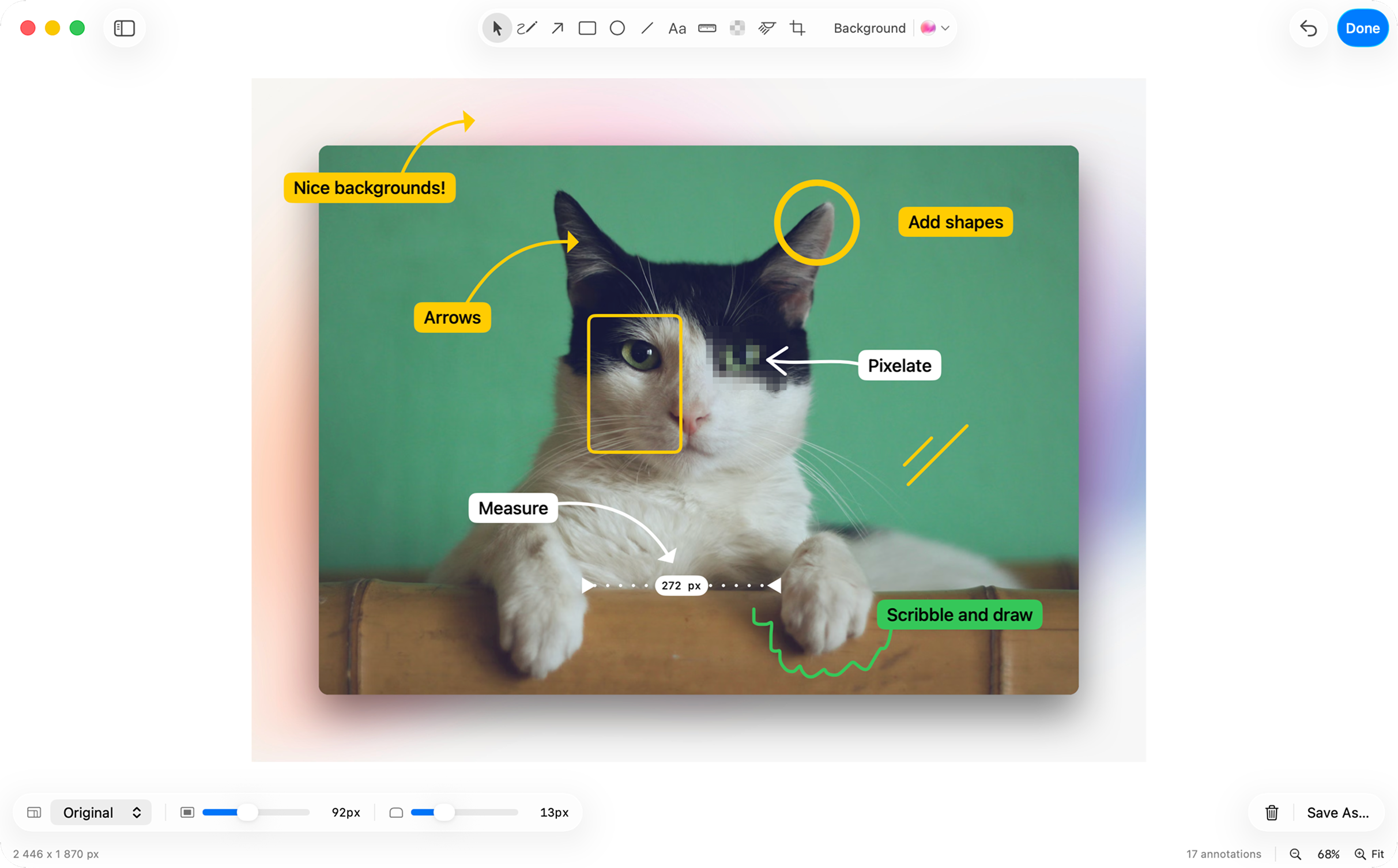Circles, rectangles, and more — quickly draw attention to exactly what matters.